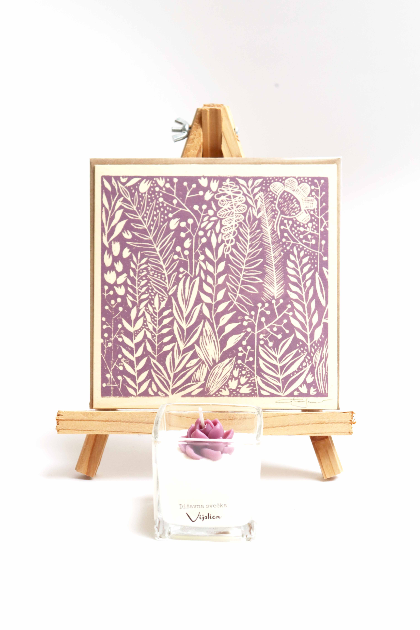 Darilni paket: grafika Mešani občutki in dišavna svečka Vijolica