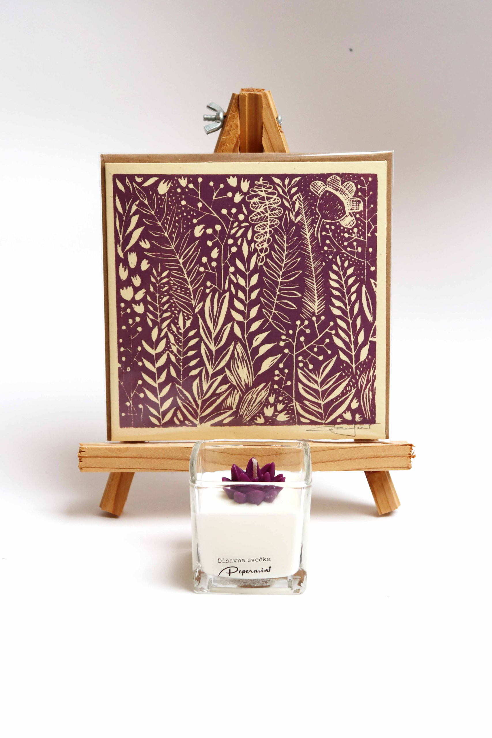 Darilni paket: temno vijola grafika Mešani občutki in dišavna svečka Pepermint - slika 3