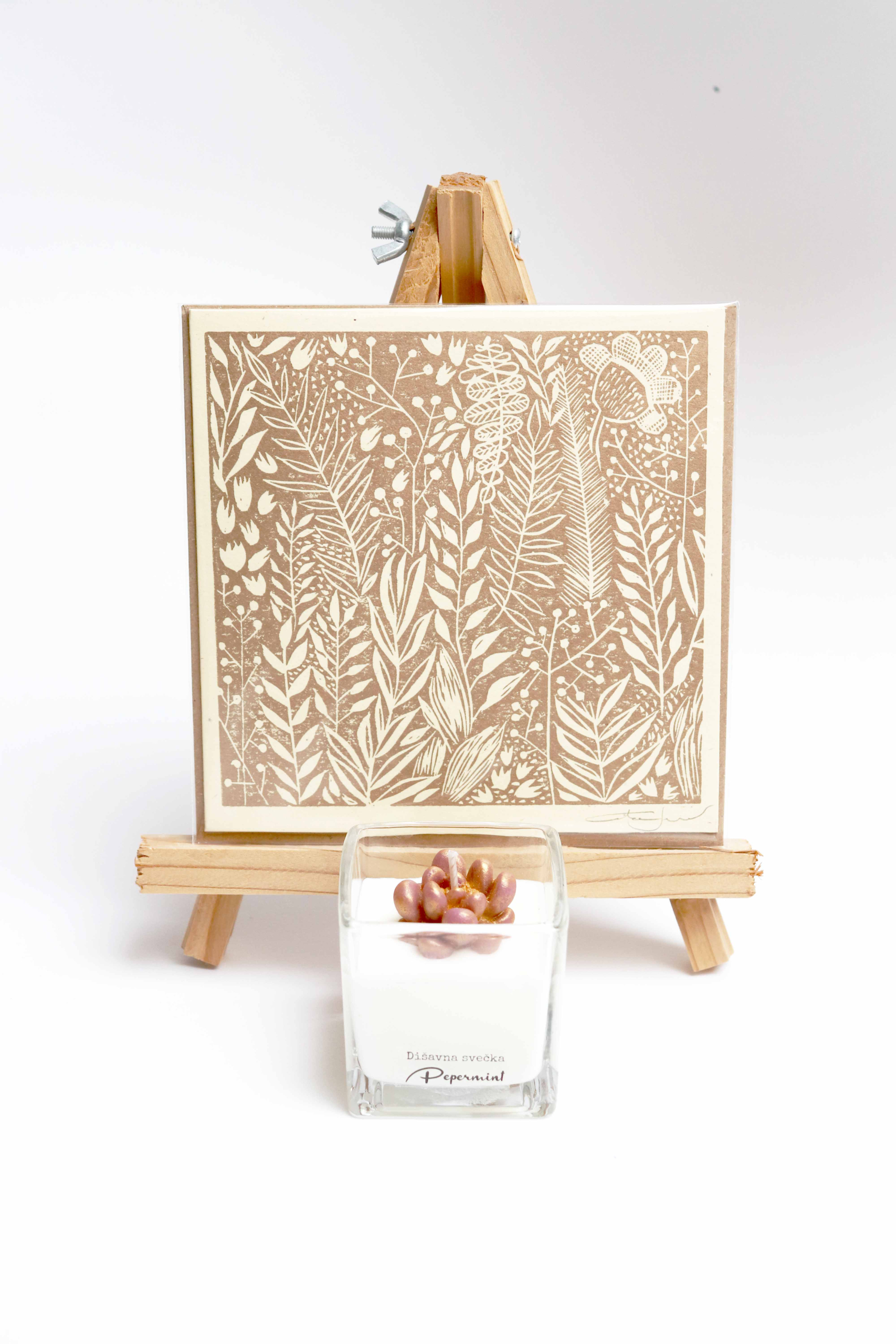 Darilni paket: zlata grafika Mešani občutki in dišavna svečka Pepermint - slika 2