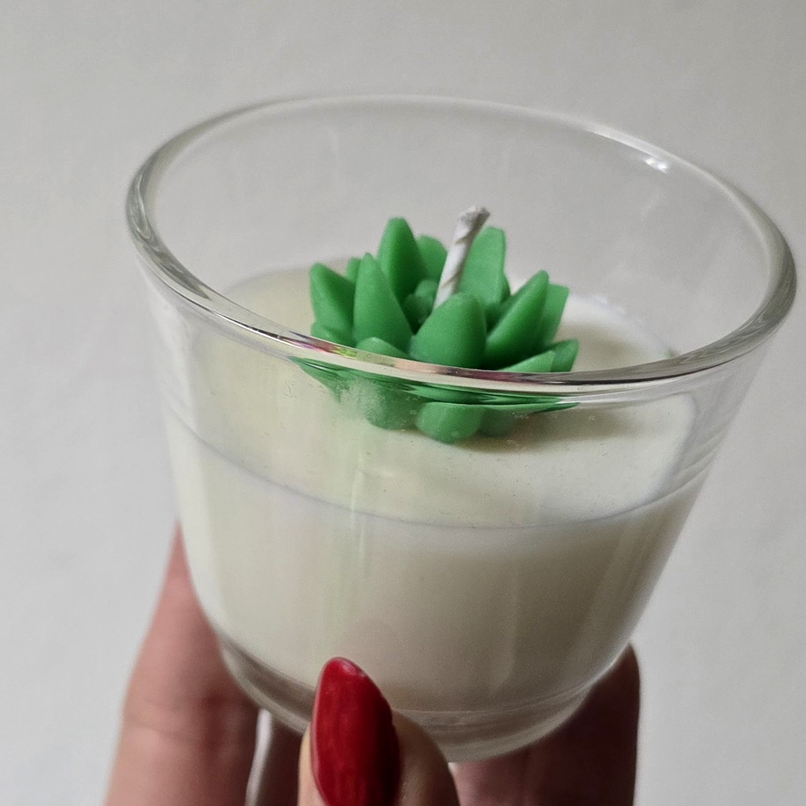 Dišavna svečka je izdelana v prikupnem kozarcu, ki ga, ko svečka zgori, uporabljaš za pitje tvoje priljubljene pijače.
