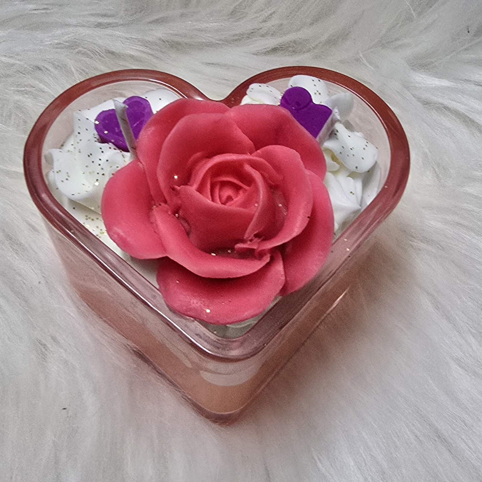 Ročno izdelane ekskluzivne sojine svečke v kozarčku v obliki srca.