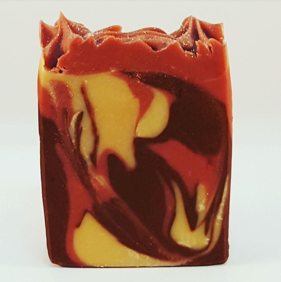 INCI: Aqua, Sodium Cocoate, Sodium Olivate, Sodium Palmate, Sodium Cocoa Butterate, Glycerin, Sodium Castorate, Cera Alba, Kaolin, Citrus Sinensis Peel Oil Expressed, Cymbopogon Flexuosus Oil, Lavandula Angustifolia Oil, Pogostemon Cablin Leaf Oil, Pinus Sylvestris Leaf Oil, Pelargonium Graveolens Oil, Limonene, Citral, Linalool, Citronellol, Geraniol, Mica, Titanium Dioxide, CI 77491, CI 77492, CI 77499, CI 77220