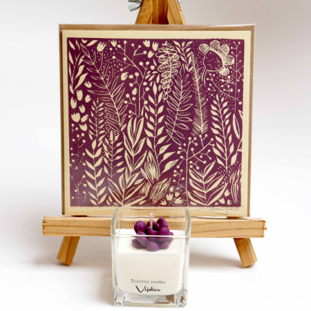 • Darilni paket: temno vijola grafika Mešani občutki in dišavna svečka Sivka